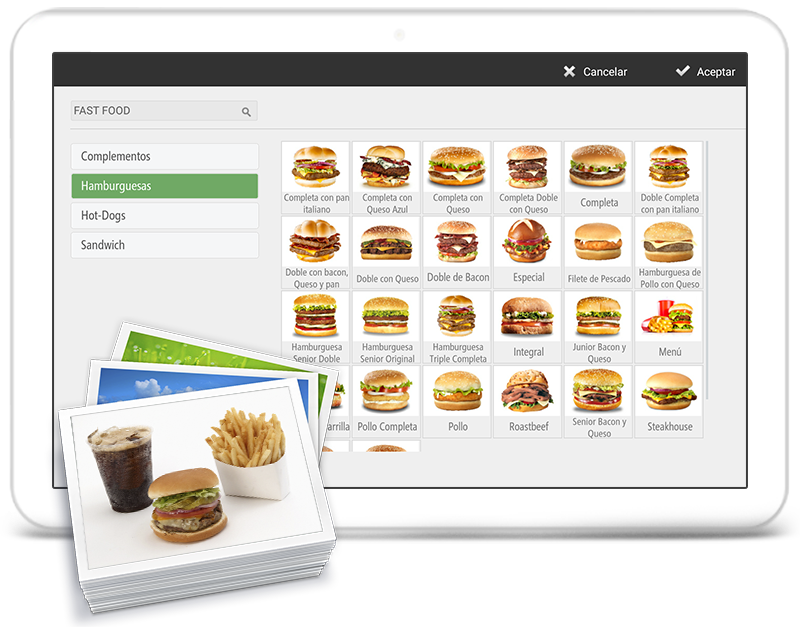 • Imágenes predefinidas: Más de 2000 referencias de artículos con imágenes, ordenadas y clasificadas por familias.