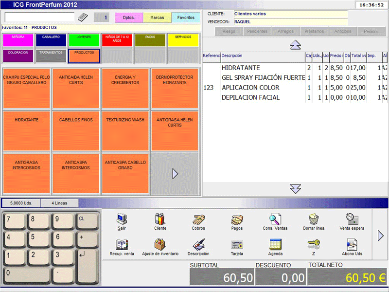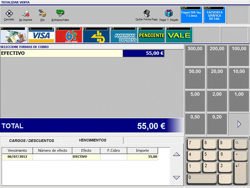 FrontRetail es la solución ideal para el punto de venta en un comercio. Gracias al diseño visual de las pantallas, FrontRetail es una herramienta intuitiva y fácil para el vendedor/a, que no requiere formación ni conocimientos informáticos. Además, todas las funciones de venta, control y estadística están diseñadas para pantallas táctiles, evitando costosos procesos de aprendizaje para el usuario.