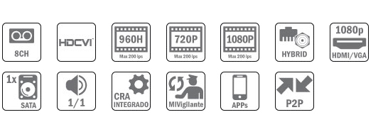 Grabador DVR híbrido de 8 canales diseñado para sistemas de videovigilancia en alta definición. Permite gestionar cámaras HDCVI y cámaras IP en un mismo sistema, ofreciendo una solución flexible tanto para nuevas instalaciones como para la ampliación de sistemas de seguridad existentes.